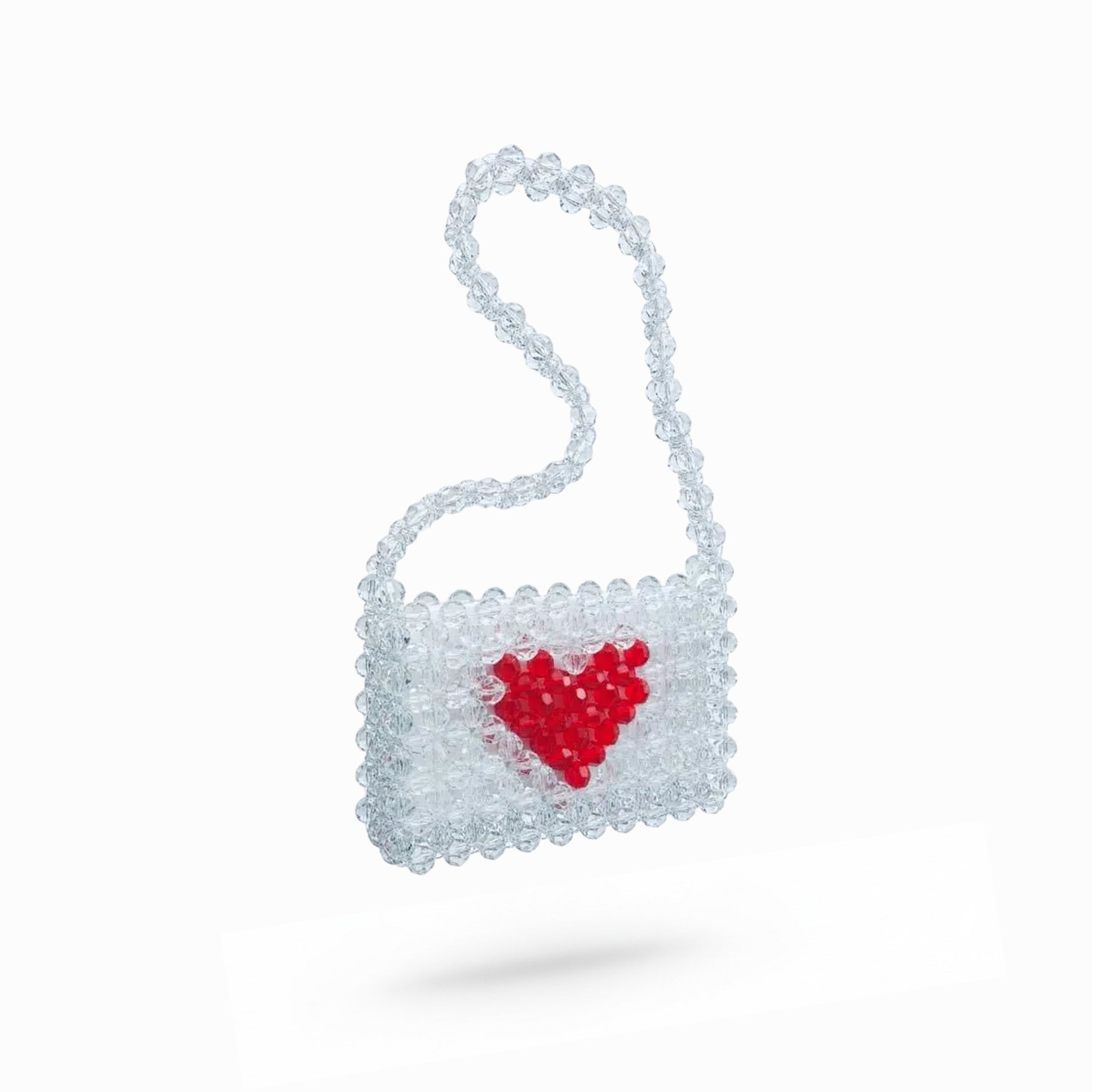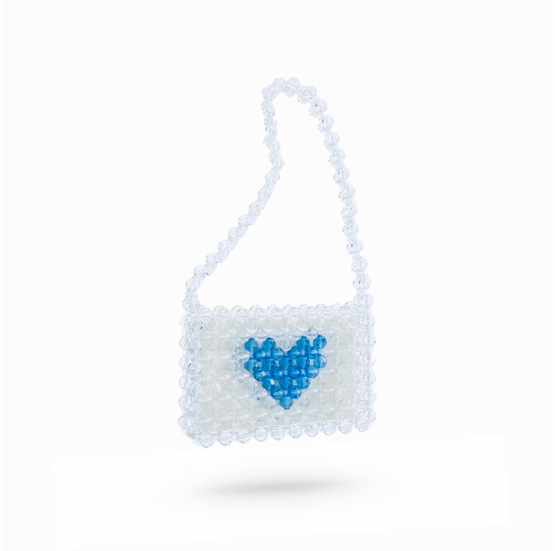 Handcrafted with big transparent beads and a unique heart icon, this bag is designed to be ICONic.